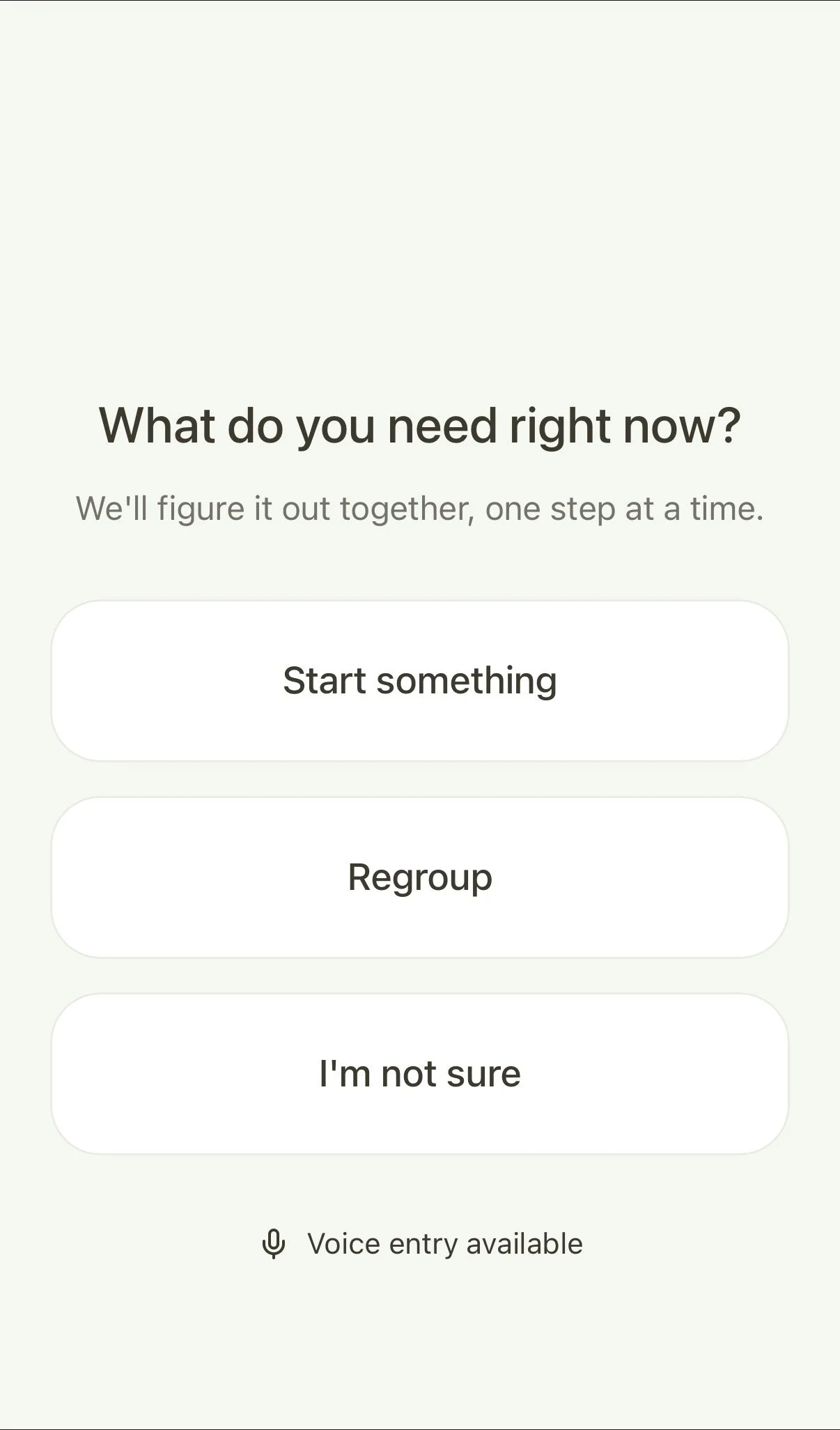 A system designed to help users move from intention to action by reducing cognitive load, clarifying first steps, and supporting regulation.